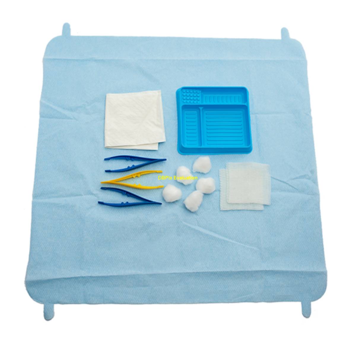 NSW TYPE, containing: 1 Sterile Field 1 Dressing Tray 1 Dressing Towel 5 Cotton Ball 1 Yellow / 2 Aqua Dressing Forceps 2 Gauze Swabs 7.5x7.5cm