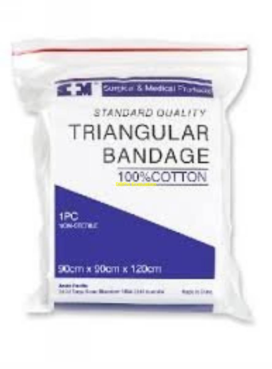 For the immobilisation of fractured or injured limbs. 100% natural cotton. Latex free. Suitable for your First Aid Kit.