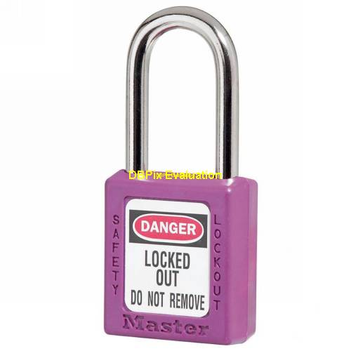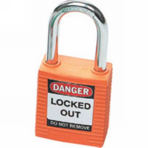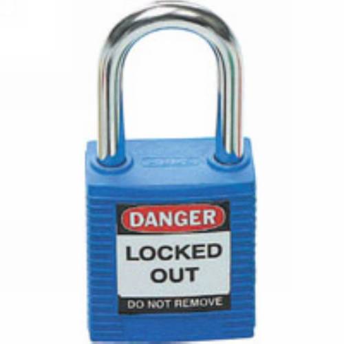 Zenex Thermoplastic, 1/4 diameter, 1-1/2 Tall plated metal shackle, High security reserved, Key retaining, Identifiable for OSHA 1910.147 Lockout Compliance - Each Keyed Alike