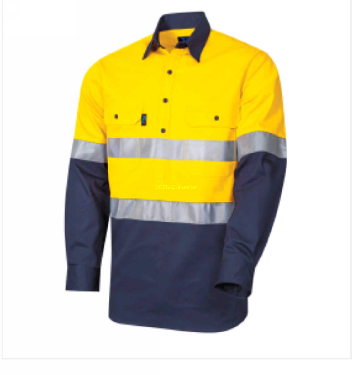 •Shirt 190gsm Drill Closed Front with Tape •190gsm 100% Cotton Regular weight drill fabric •2 Hoop design •3M silver reflective tape •Two Tone •Long Sleeve •2 Piece Collar •Closed Front