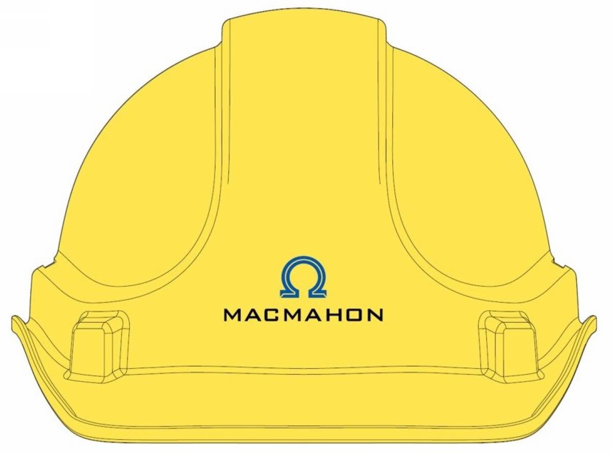 Macmahon Logo, 6 point Prolock harness, Air vent and cotton sweat band, AS/NZS 1891 TYPE 1 Compliant