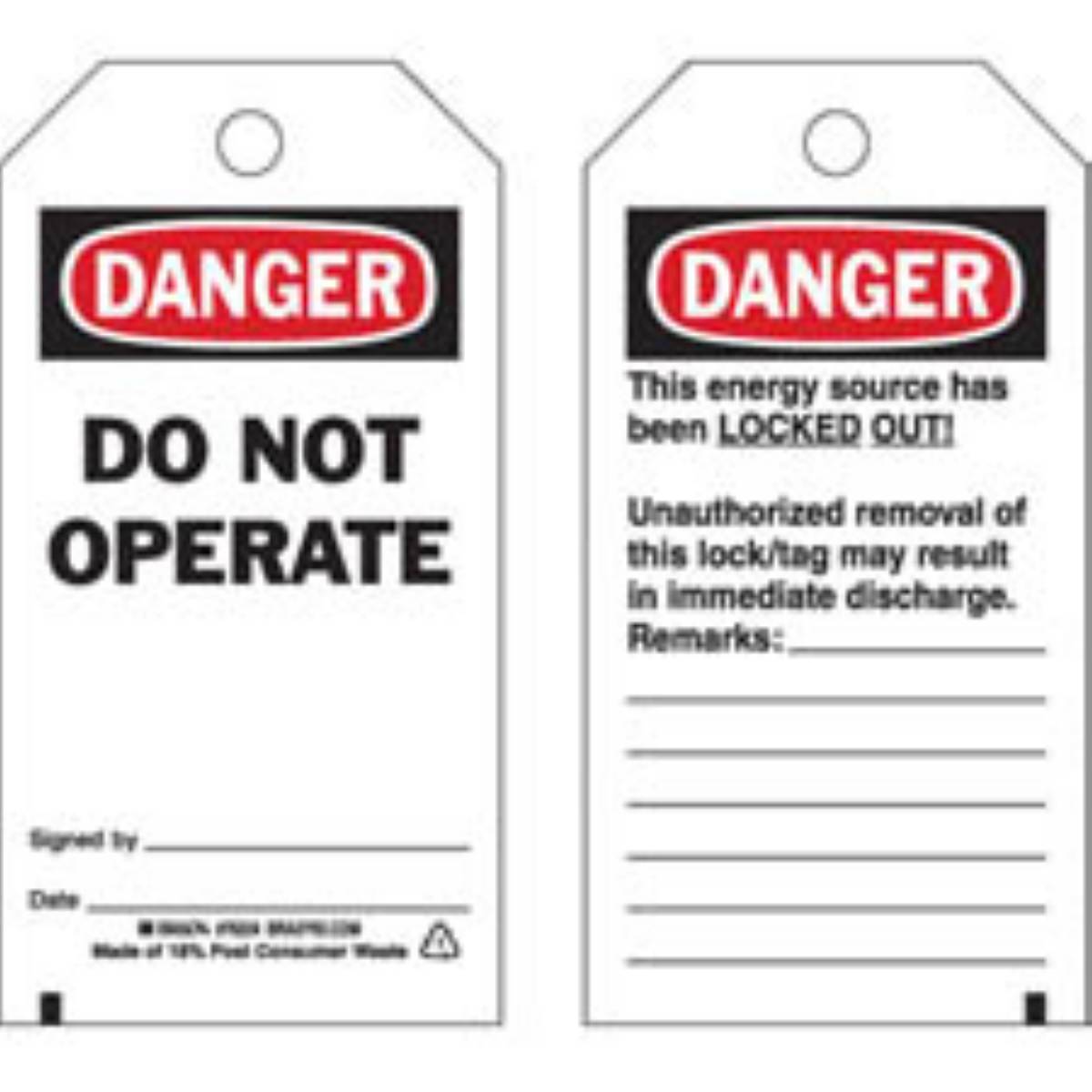 • Brady 76224 Poly 2-Sided Danger Tage (PK25)